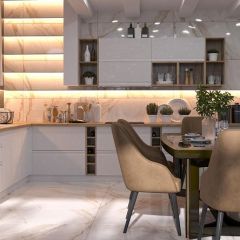 • любая витрина кухни идет со стеклом с художественным матированием, оно крепится во фрезерованный паз с внутренней стороны фасада на специальные кляймеры;