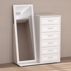 Кэт-4 Комод 6 ящ с зеркалом (МДФ Бодега белая/Экокожа Caiman белый)